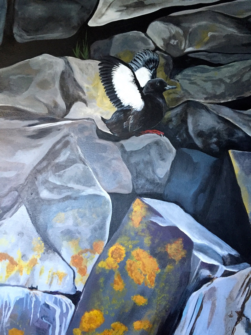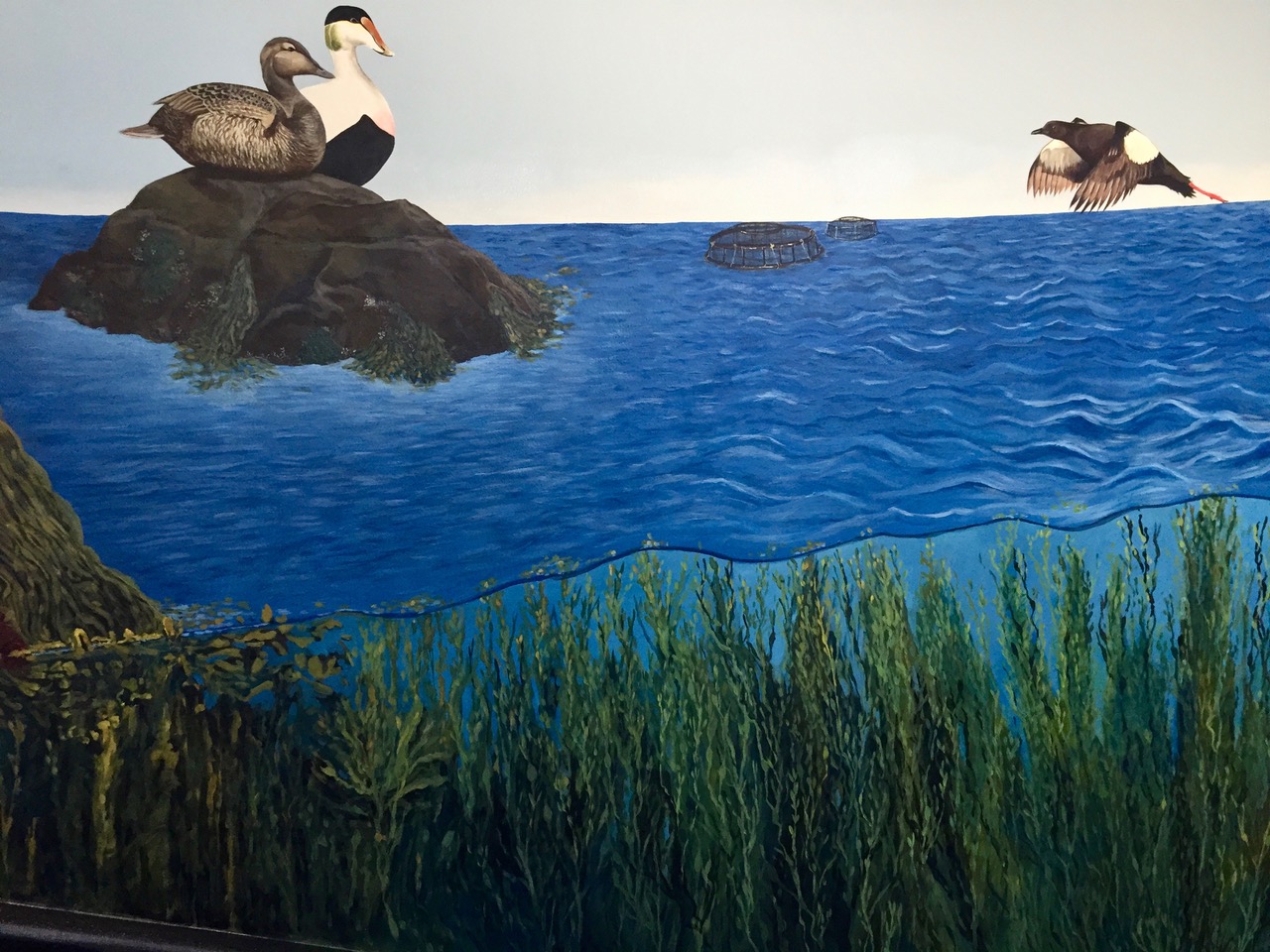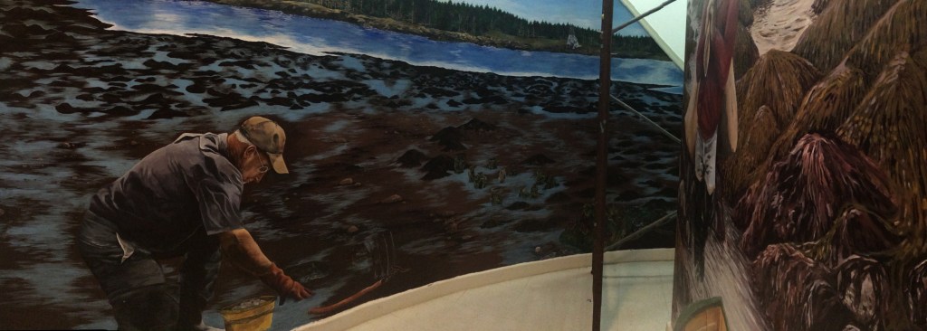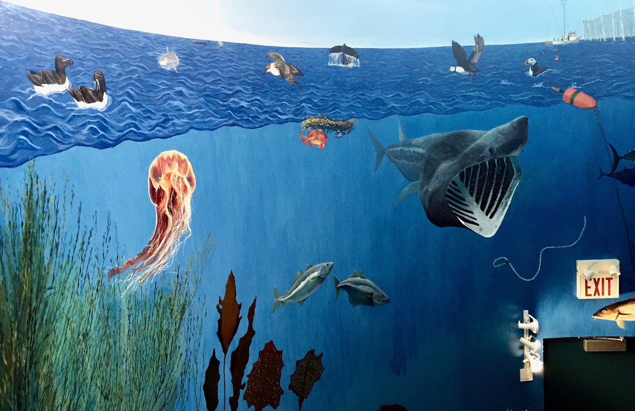In 2015 and 2016, I helped paint a multi-floor mural in the Grand Manan Museum, working with three other artists and research scientists from the Bowdoin Scientific Station and the Grand Manan Whale and Seabird Research Station. The mural depicts ecosystems typical to the Bay of Fundy, which is defined by its extreme tidal range. The intent of the project was to create an immersive experience of the complex and fragile ecosystem for both tourists and the local community. The various walls focus on the natural history of plant and animal species and islanders’ current and historic relationships with their ecosystem. The Grand Manan Mural Project was a two year collaboration between the Bowdoin Scientific Station on Kent Island and the Grand Manan Museum, in the Grand Manan archipelago of New Brunswick, Canada. In 2015 I worked with fellow Bowdoin College student Isaac Jaegerman and Grand Manan artist Sara Griffin to paint the first three walls. Mount Allison University student Shauna Gass joined the project in 2016 to complete the mural.